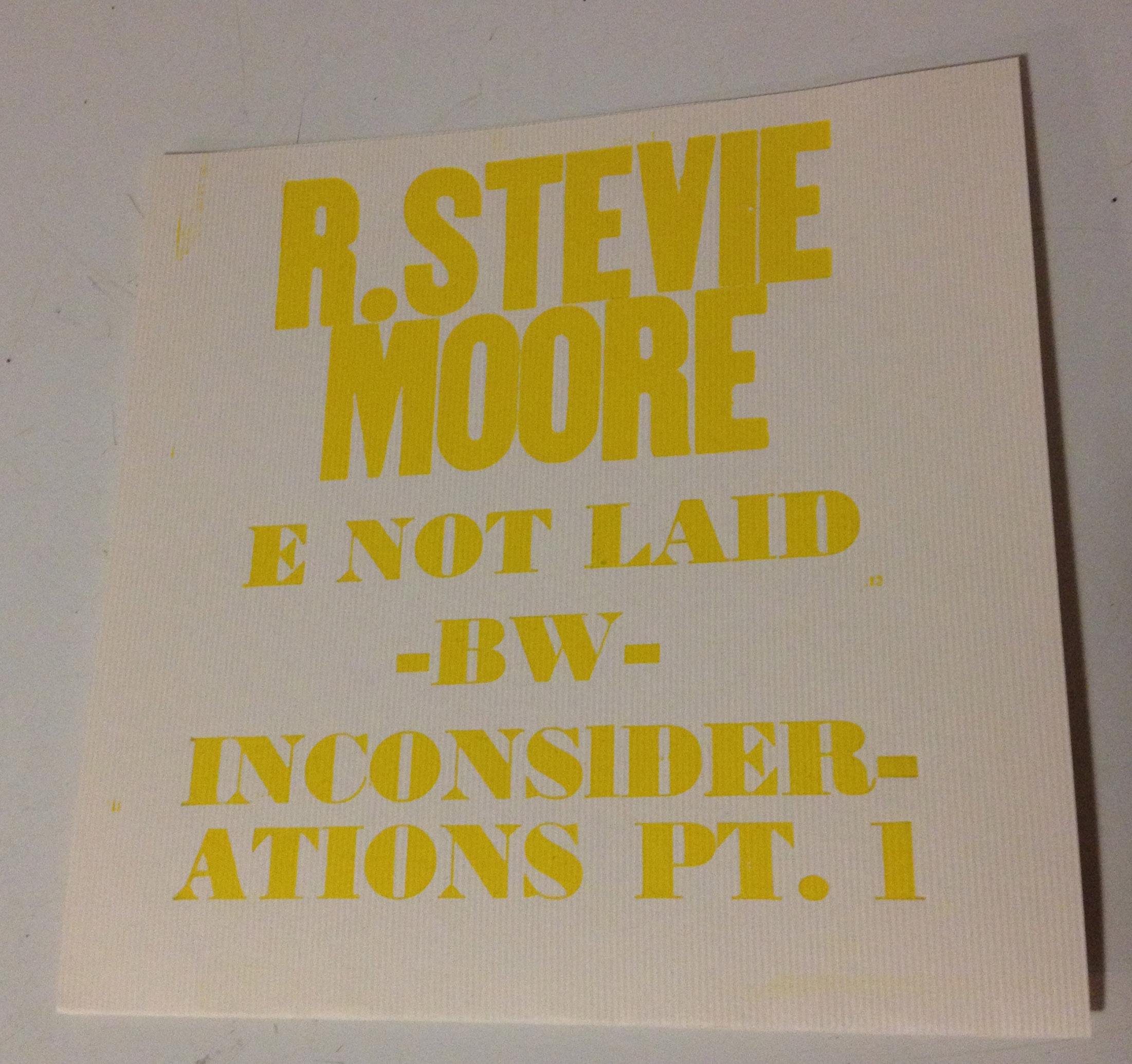 • "E Not Laid" b/w "Inconsiderations Pt. 1" 7" clear square lathe cut, People In A Position To Know Records (US) RSMSSC-#4 (ltd ed of 68), 2012 INFO