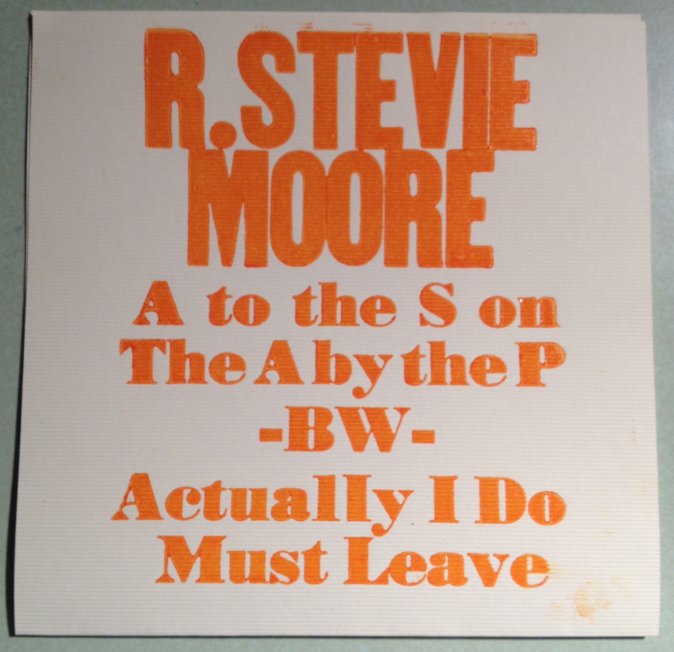• "A to the S on the A by the P" b/w "Actually I Do Must Leave" 7" clear square lathe cut, People In A Position To Know Records (US) RSMSSC-#5 (ltd ed of 88), 2012 INFO